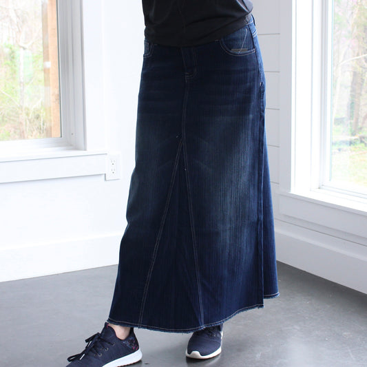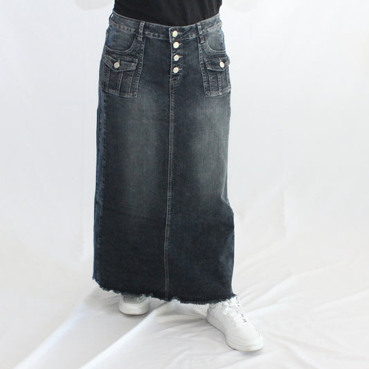 The Amelia - Dark Blue 5 Button Fly Jean Skirt