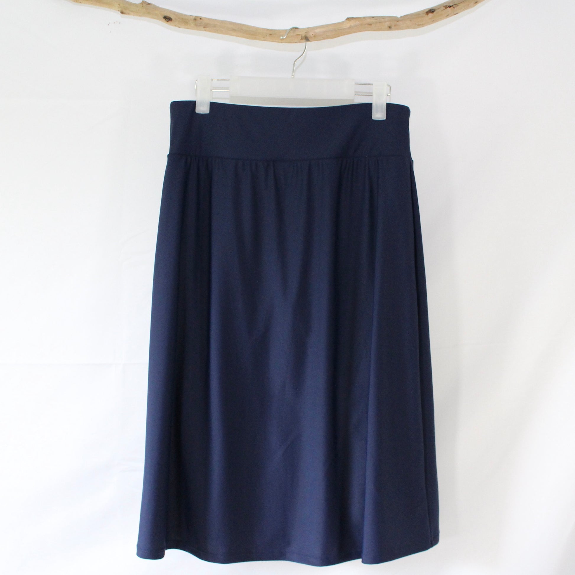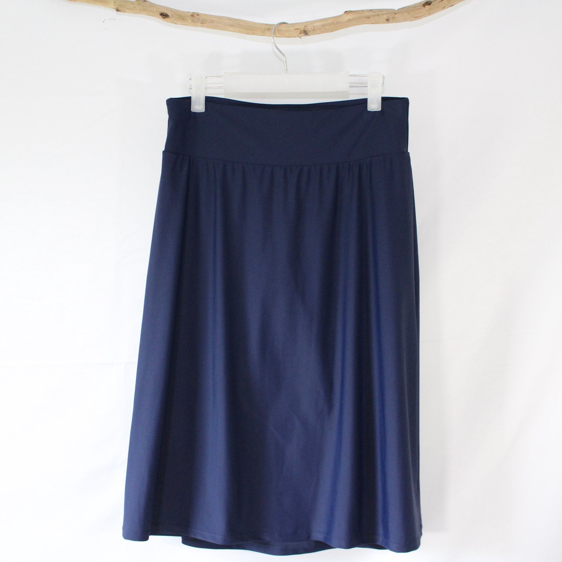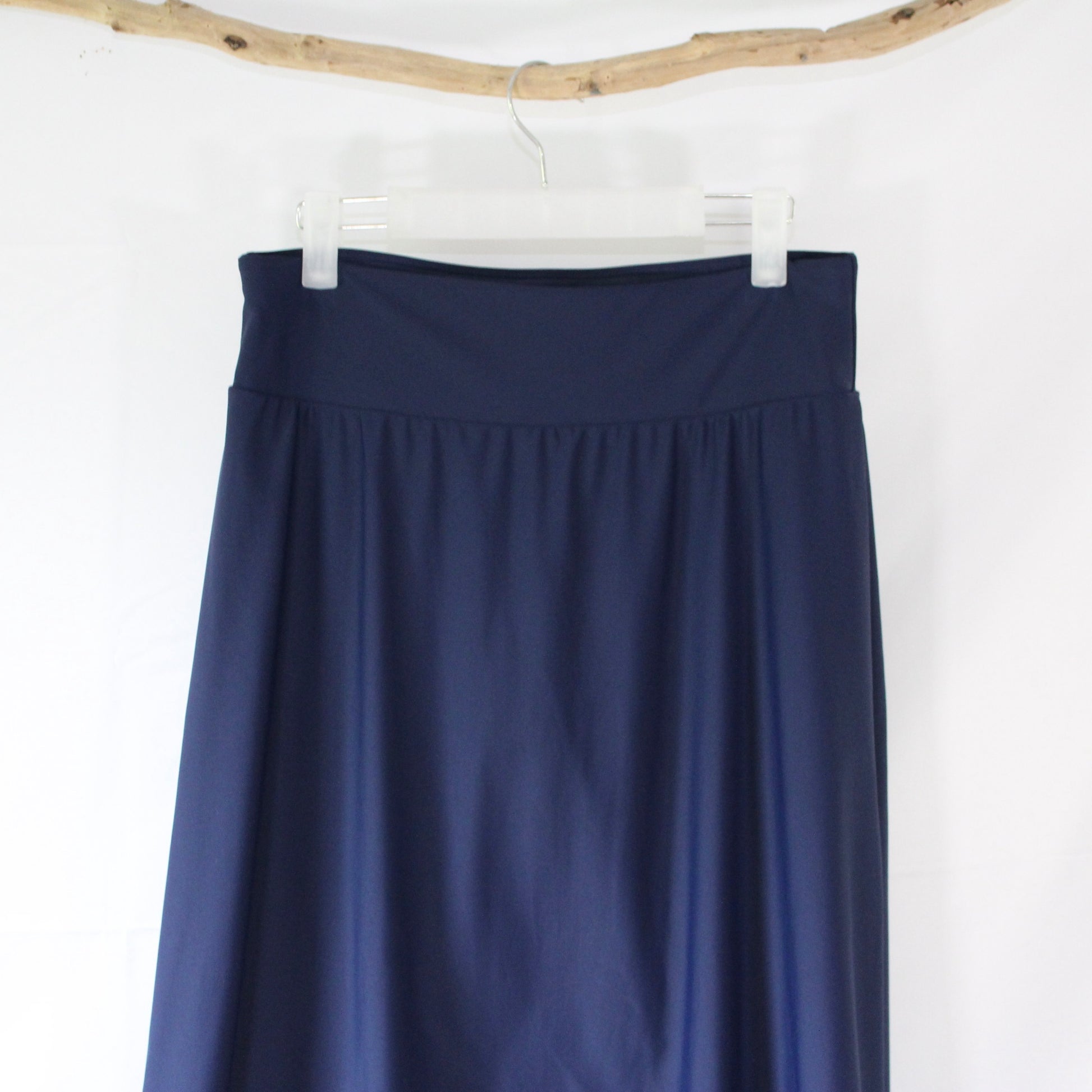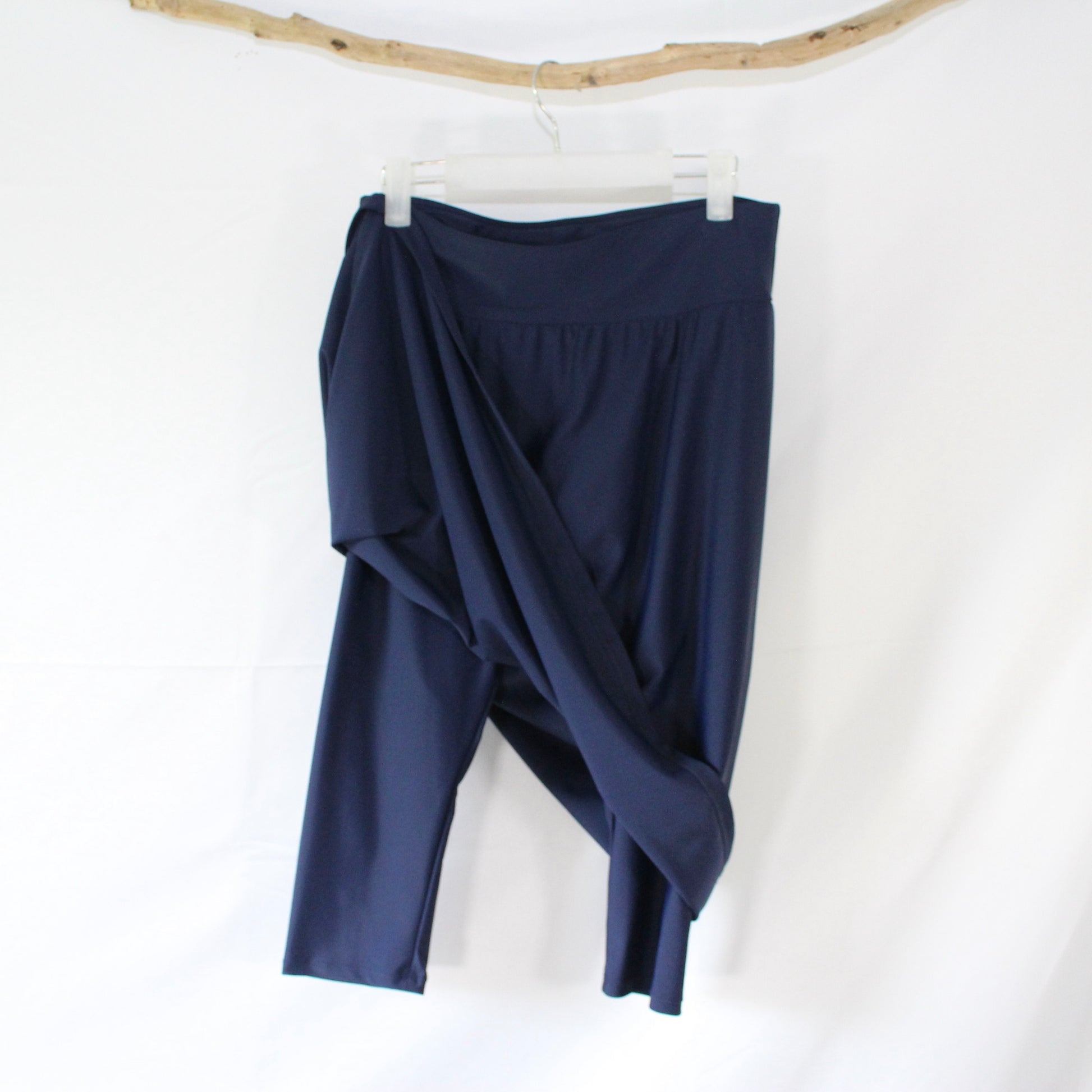 The Zoey - Navy Long Swim Skort by Calypsa, offers modest coverage and functionality for any water activity. Featuring attached leggings and a high-waisted design, it provides comfort and practicality. Made with 82% nylon and 18% spandex, with a 100% polyester gusset, it is quick-drying and perfect for a day in the sun.